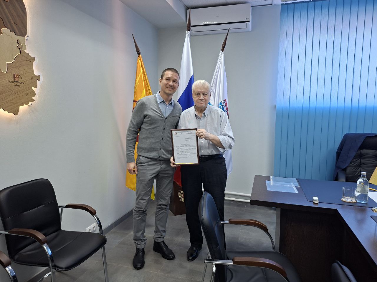 В ходе приема лидер Сергей Миронов наградил, победившего на муниципальных выборах в Большой Ижоре Ломоносовского района Павла Ро.