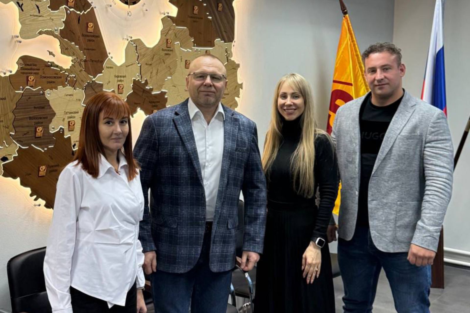 10 ноября в Региональном отделении партии СПРАВЕДЛИВАЯ РОССИЯ состоялась встреча с руководителем АНО Центр поддержки семей "Многодетный Петроград" Наталией Богдановой. В ней приняли участие Председатель ленинградского отделения Игорь Новиков, Руководитель аппарата реготделения Мария Зарифова и Председатель Местного отделения партии в Тосненском районе Алексей Александров.