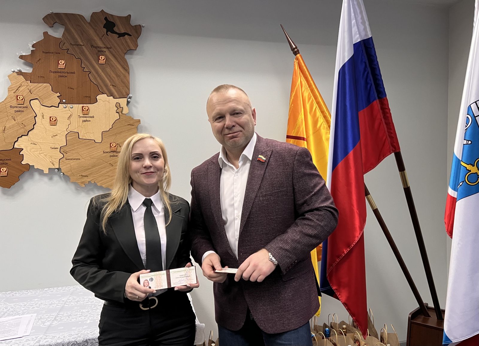 20 декабря в ходе расширенного заседания председатель Совета регионального отделения партии "СПРАВЕДЛИВАЯ РОССИЯ" в Ленинградской области Игорь Новиков торжественно вручил партийные билеты семейной паре из Киришей – Дмитрию и Ольге Пиденко.