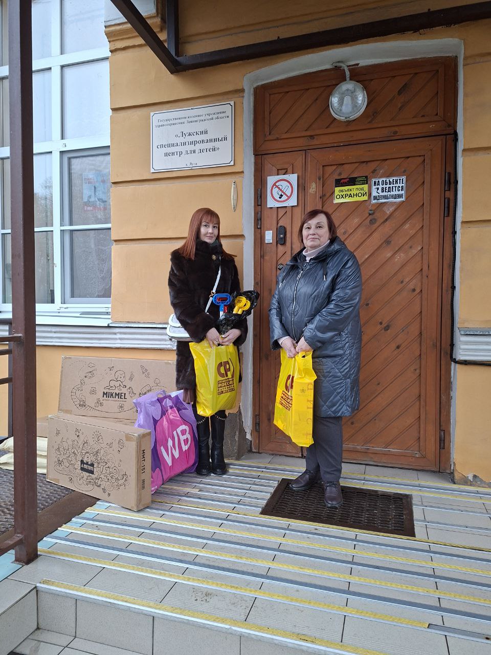 9 декабря руководитель аппарата регионального отделения партии СПРАВЕДЛИВАЯ РОССИЯ в Ленинградской области Мария Зарифова и председатель Местного отделения партии в Лужском районе Татьяна Сисина передали необходимую помощь Лужскому специализированному центру для детей.