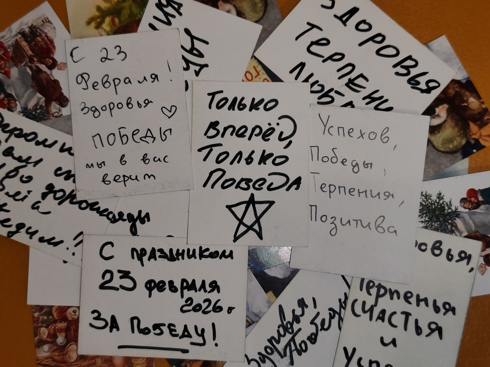 Прохожим предлагали простую, но важную миссию – подписать праздничную открытку. Казалось бы, всего несколько предложений, но сколько в них было эмоций! Кто-то вспоминал своих отцов и дедов, кто-то желал здоровья незнакомому солдату. Каждая открытка получилась уникальной.